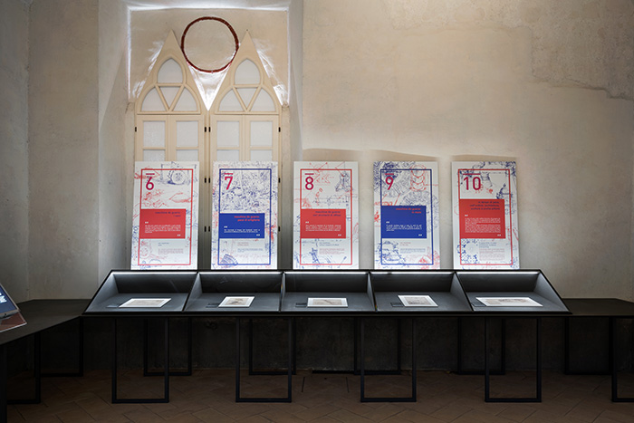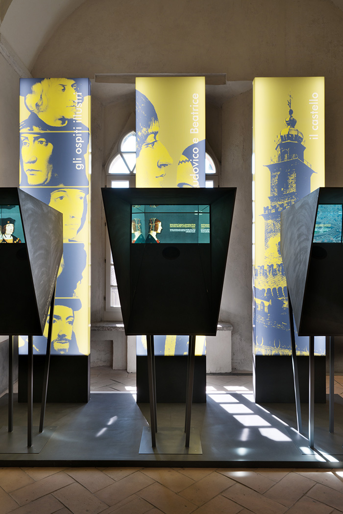 The set up fits lightly within the Maschio of the Castle independently and non-invasively, allowing the reading of the historical rooms of the Palazzo Ducale, but offering at the same time an immersive experience of knowledge and exploration, defining a multimodal message made available to different audiences.