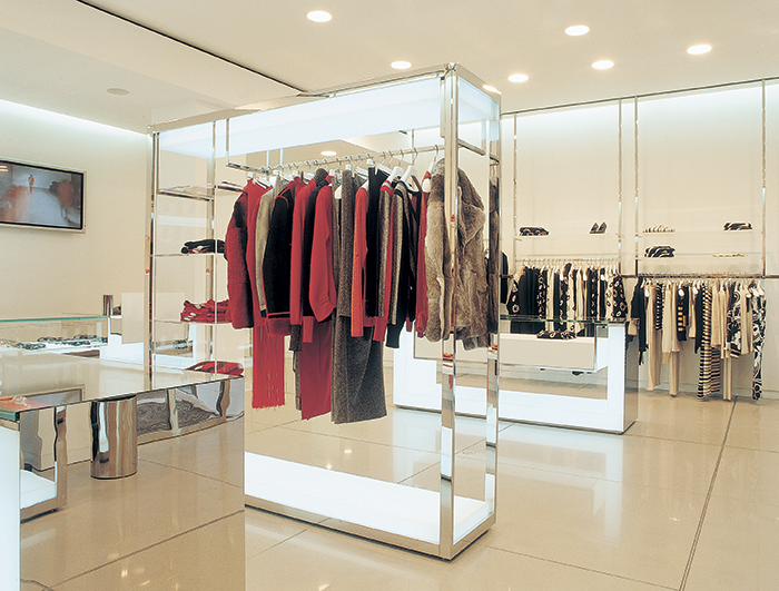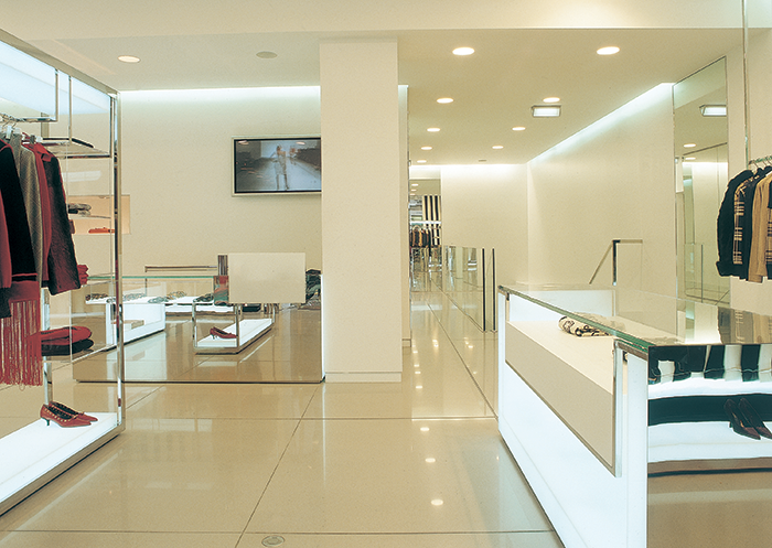 | ICEBERG FLAGSHIP STORE graphic with Pitis Flagship store location: Rue du Faubourg-Saint-Honoré, Paris Other stores: Hong Kong, Shanghai, Macau (CN), Birmingham, London (UK), Doha (QA), Singapore (SG), Seoul, Pusan (KR), Kaoshuing (TW), Jakarta (ID) , Fiumicino, Linate (IT) Date: 2001 – 2003 Client: Iceberg